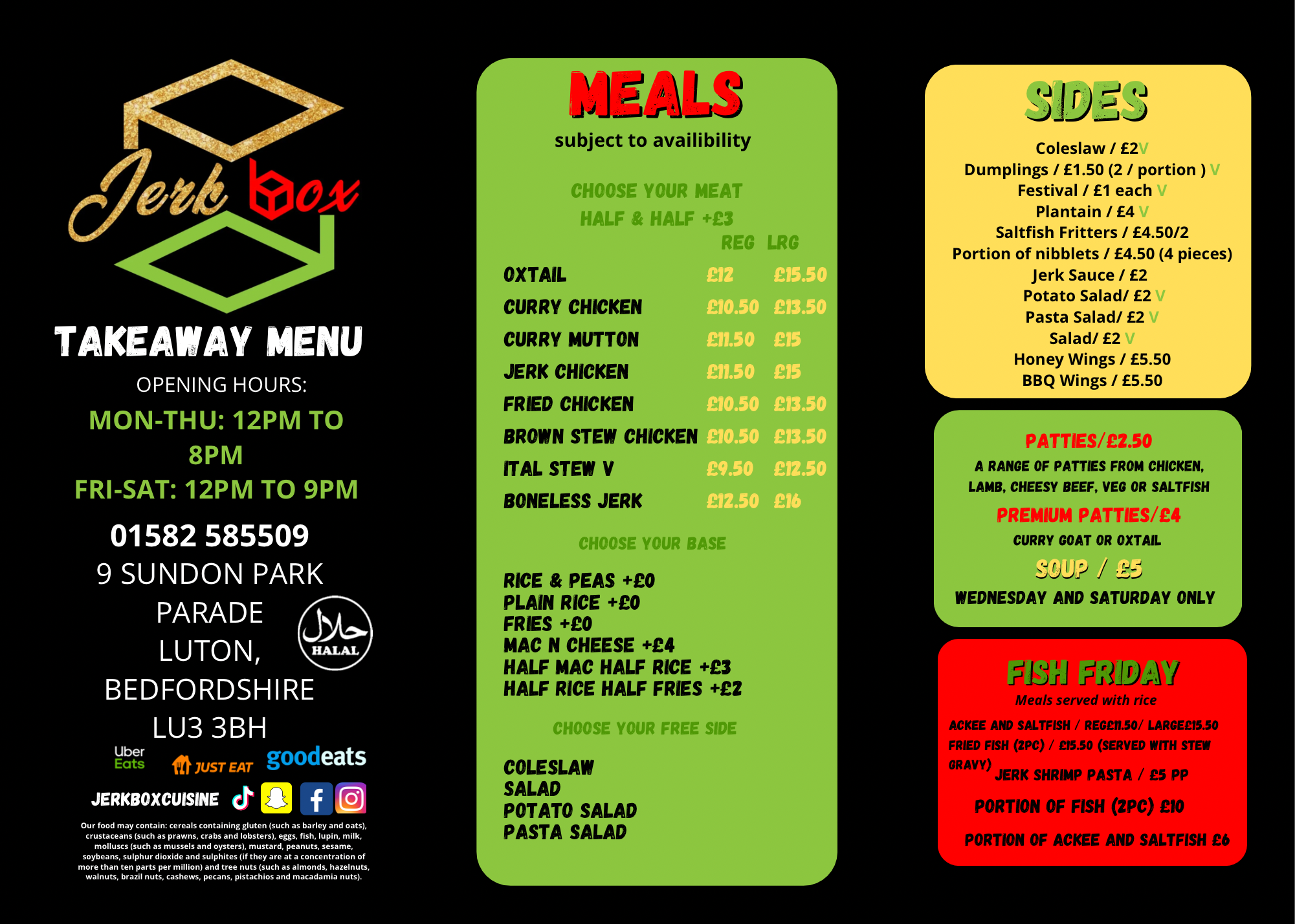 OPEN EVERY DAY EXCEPT SUNDAY!